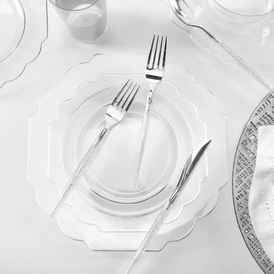 Scalloped Clear & Silver Dinner Plates