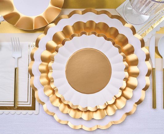 Scalloped Salad Plate | Gold & White