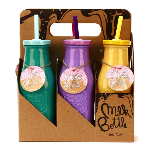 Colored Glass Milk Bottles | Set of 6