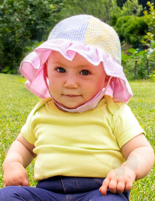 Color Block Seersucker Ruffle Brim Hat