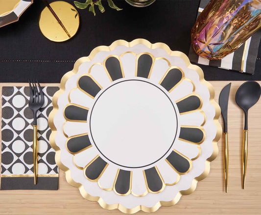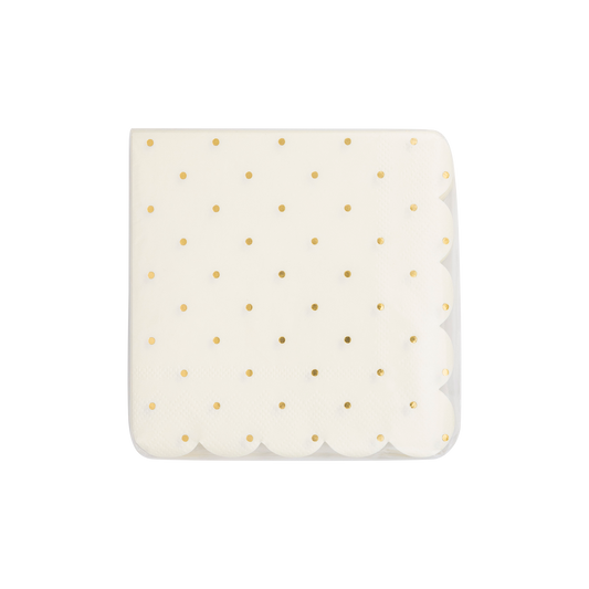 Cottage Gold Foil Polka Dot Scalloped Paper Cocktail Napkin