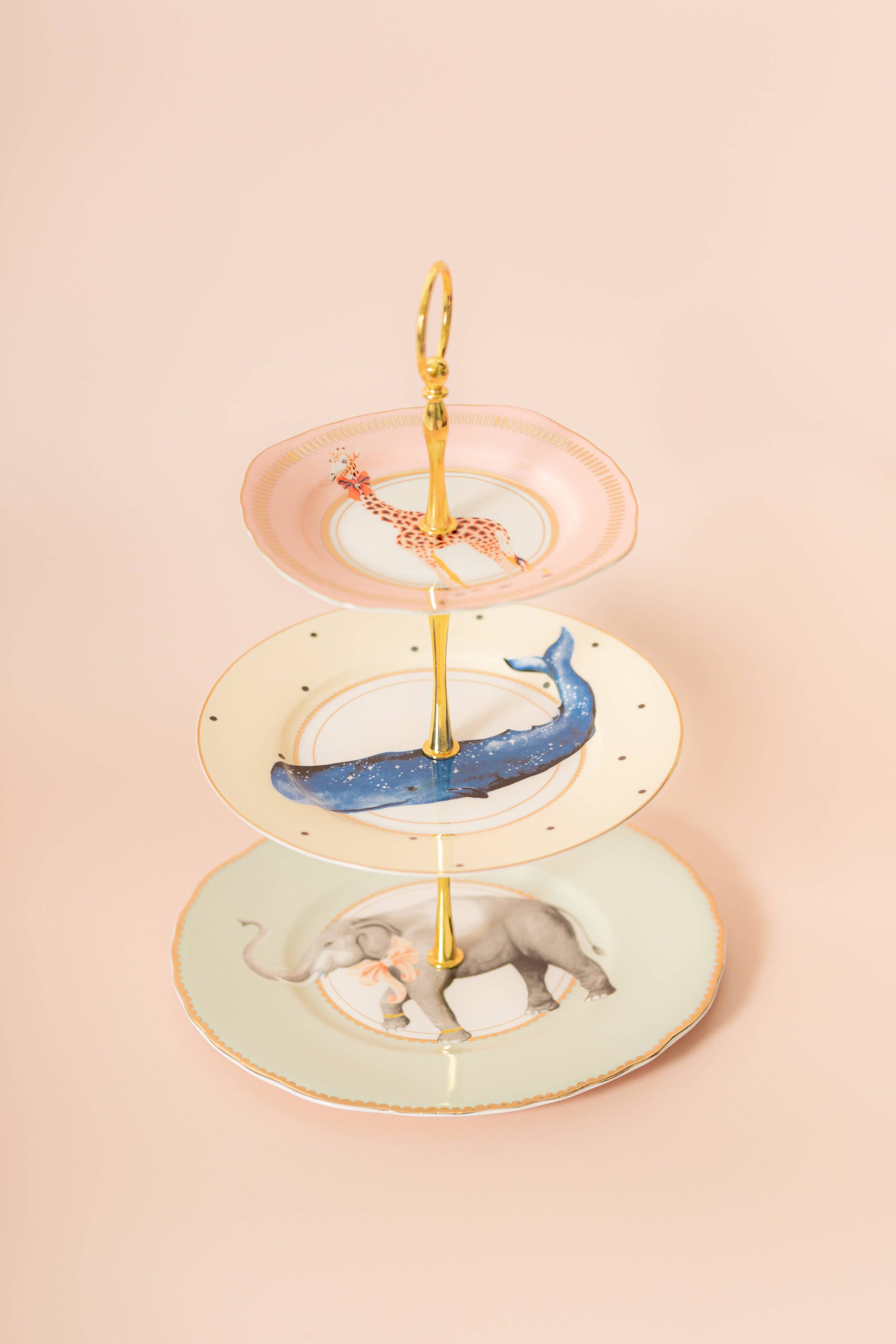 This quirky Animal cake stand features our boho leopard on the bottom plate, our well loved whale on the middle plate and two lover birds on the upper plate. Exquisitely crafted in the finest bone china with gilt gold detailing, the design typifies Yvonne Ellen's individualistic approach to classic pieces. How fab?!