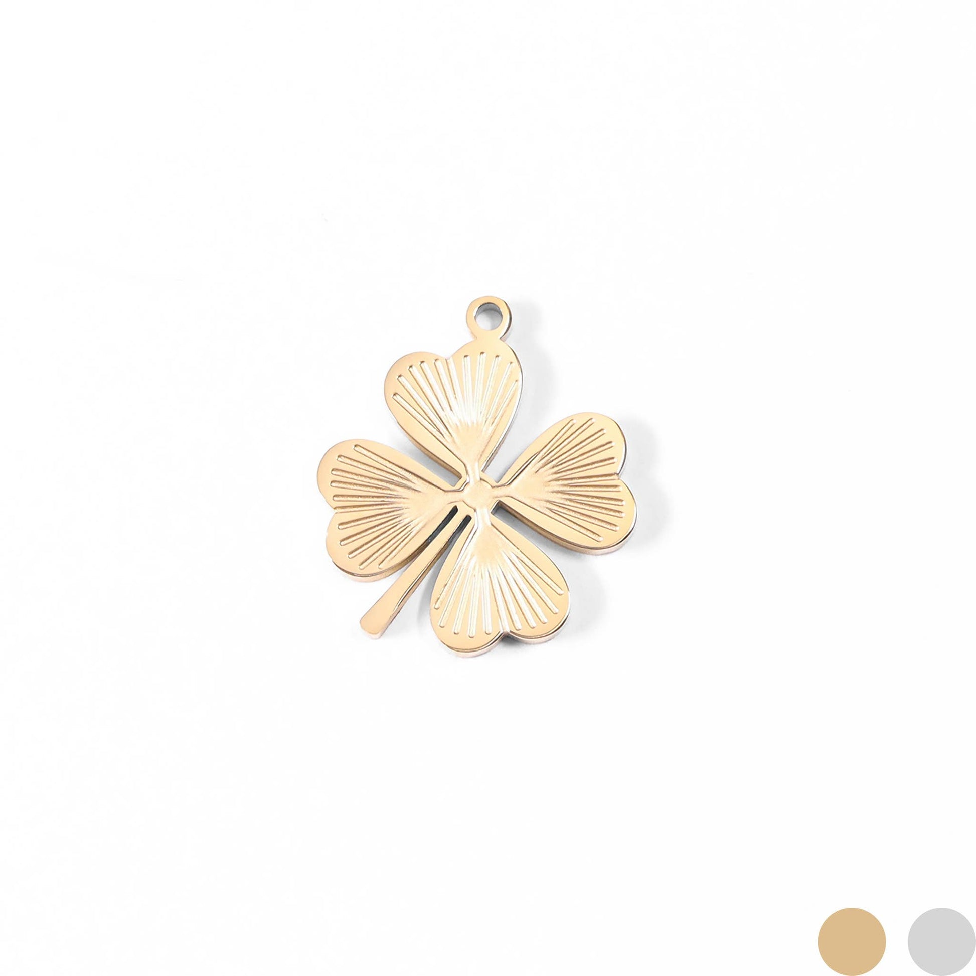 Bring your chains to life with this stunning sunburst four leaf clover charm. The perfect touch of luck that your customers can carry with them every day! Made with our proprietary blend of surgical-grade stainless steel designed for everyday wear, your customers have quality, style, and comfort all in a single charm.