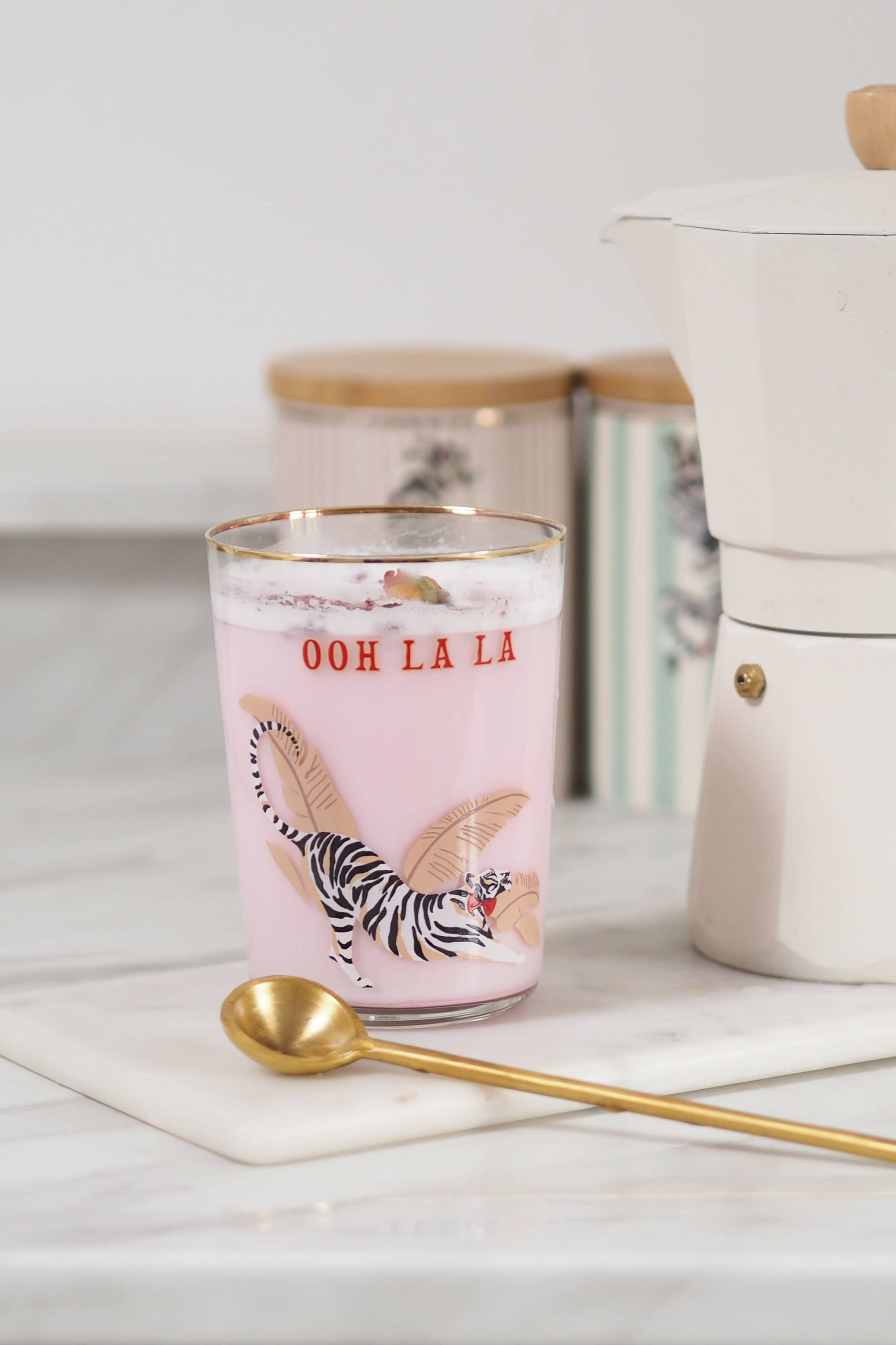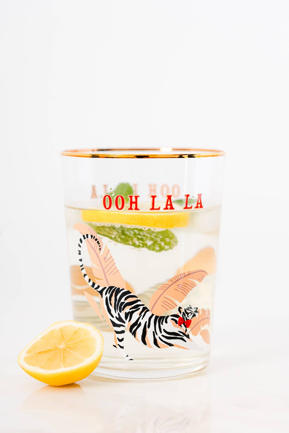 Unique and luxurious Yvonne Ellen Tiger Hi Ball glass complete with gilt gold edge detailing and colourful animal illustrations.